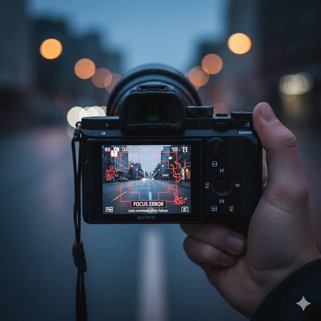 پیامهایی مانند “AF Error” یا “Lens not recognized” از دیگر نشانههای مشکل فوکوس سونی هستند.
