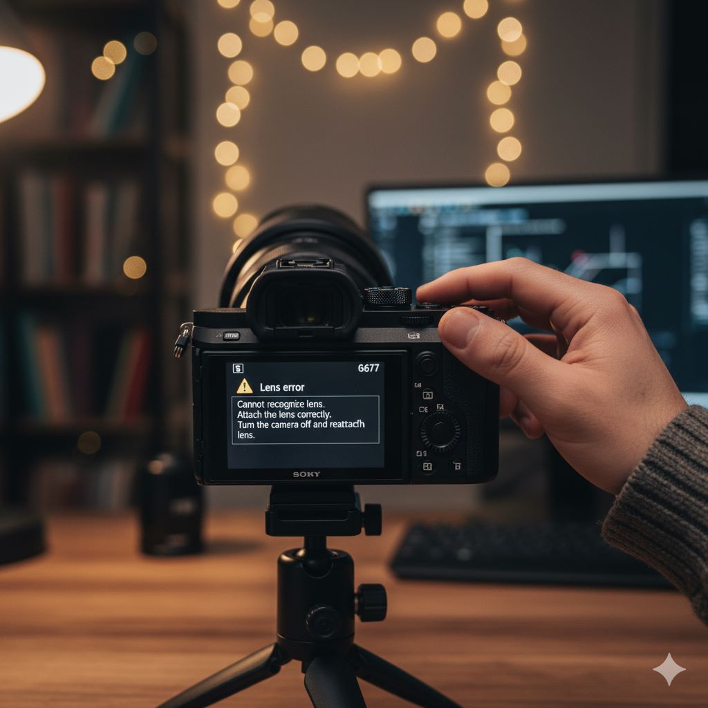 یکی از رایجترین علائم خطای لنز با بدنه سونی، نمایش پیغامهایی مانند "Lens Error" یا "Cannot communicate with lens" است. این پیغام معمولاً وقتی ظاهر میشود که دوربین قادر به تبادل دادهها با لنز نیست. گاهی این خطا موقت است و با خاموش و روشن کردن دوربین یا جدا و وصل کردن لنز رفع میشود، اما تکرار مداوم آن نشاندهنده مشکل جدیتر در پینهای اتصال یا برد داخلی لنز است.